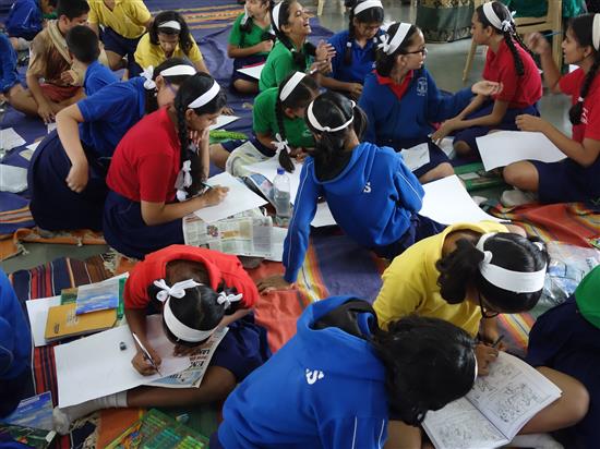 Chitra Vaidya with children at Khula Aasmaan workshop, New English Medium School, Pune - 3