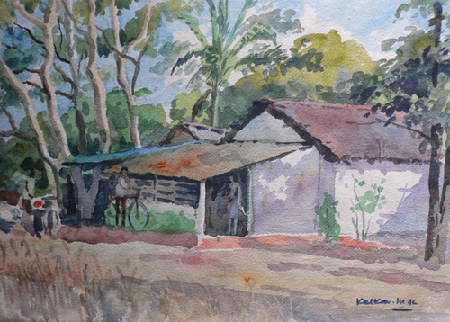 House in Forest, Landscape Painting by M. K. Kelkar, Watercolour on Paper, 12 X 16 House in Goa, Landscape Painting by M. K. Kelkar, Watercolour on Paper, 13 X 19.5 House in Goa, Landscape Painting by M. K. Kelkar, Watercolour on Paper, 14 X 19
