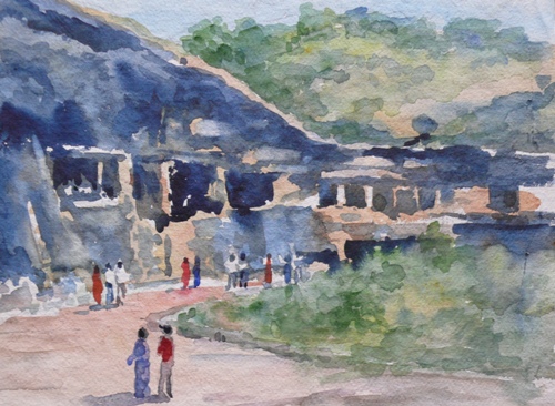 Indira Gandhi Shakti Sthal, Landscape Painting by M. K. Kelkar, Watercolour on Paper, 7 X 9.5 Govalconda Fort, Landscape Painting by M. K. Kelkar, Watercolour on Paper, 14 X 20 Karla Caves, Landscape Painting by M. K. Kelkar, Watercolour on Paper, 9.5 X 13.5