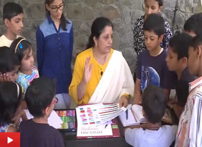 See the video of children painting with oil pastels at the children art workshop conducted by artist and art teacher Chitra Vaidya for Khula Aasmaan at Indiaart Gallery, Pune. The children were from Mansukhbhai Kothari National School, Pune. They visited the Khula Aasmaan art exhibition of medal winning artworks along with their art teacher Swati Kunte.