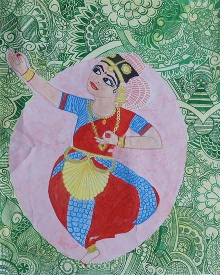 Kathakali, painting by Young Artist Priya Malik Honorable Mention in Khula Aasmaan online painting competition for college students Keywords: Indian Dance , Design , Kathakali , kathakali dance , woman View Portfolio icon Share Facebook Twitter Whats App Pinterest Description -- Art Number 22250 Artwork Title Kathakali Artist Name Priya Malik Medium Watercolour on Paper Size 28 x 22 inches (71.12 x 55.88 cm) Information This painting by young artist Priya Malik received a Honorable Mention in Khula Aasmaan student's art competition for January to March 2019.