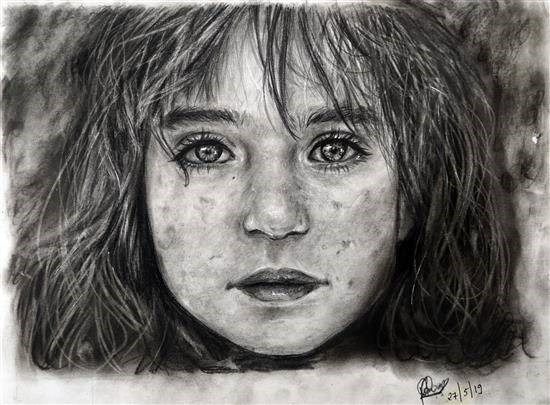 A Portrait of syrian girl from refugee camp in Adana, Turkey, painting by Young Artist Sanyukta Pawar