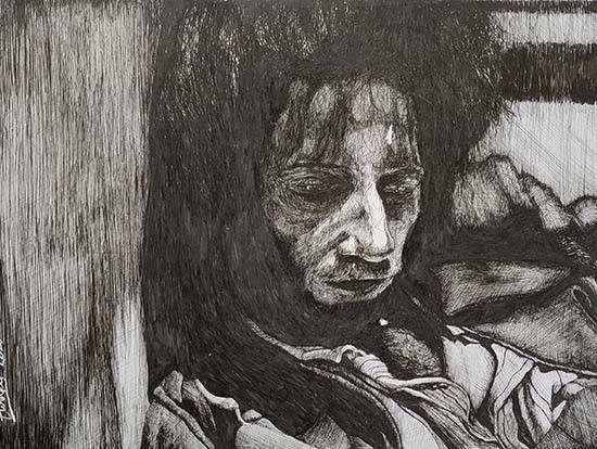 The Prisoner Bronze medal in Khula Aasmaan art competition for young adults Keywords: the prisoner , tired prisoner , expression of tiredness , grief , face , pen sketch View Portfolio icon Share Facebook Twitter Whats App Pinterest Description -- Art Number 23752 Artwork Title The Prisoner Artist Name Twinkle Medium Pen on Paper Size 23 x 31 inches (58.42 x 78.74 cm) Price Rs. 8,400 ($113.98) Information The Prisoner, is a pen sketch directly done on paper with no use of pencils. Different numbers of pointed pen markers have been used to capture the exact emotions with dark-light, hard and soft lines. This scene expresses a tired prisoner in his cell who is laying in the corner area where light is coming. The expression of tiredness and grief are visible on his face. This painting by young artist Twinkle (24 years) received a Bronze Medal in Khula Aasmaan art competition for young adults for January to March 2021. See the video about this artwork