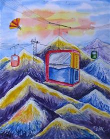 View Details Scenic beauty of mountains and mesmerizing view of ropeway Watercolour on Paper 33 x 28 inches 83.82 x 71.12 cm
